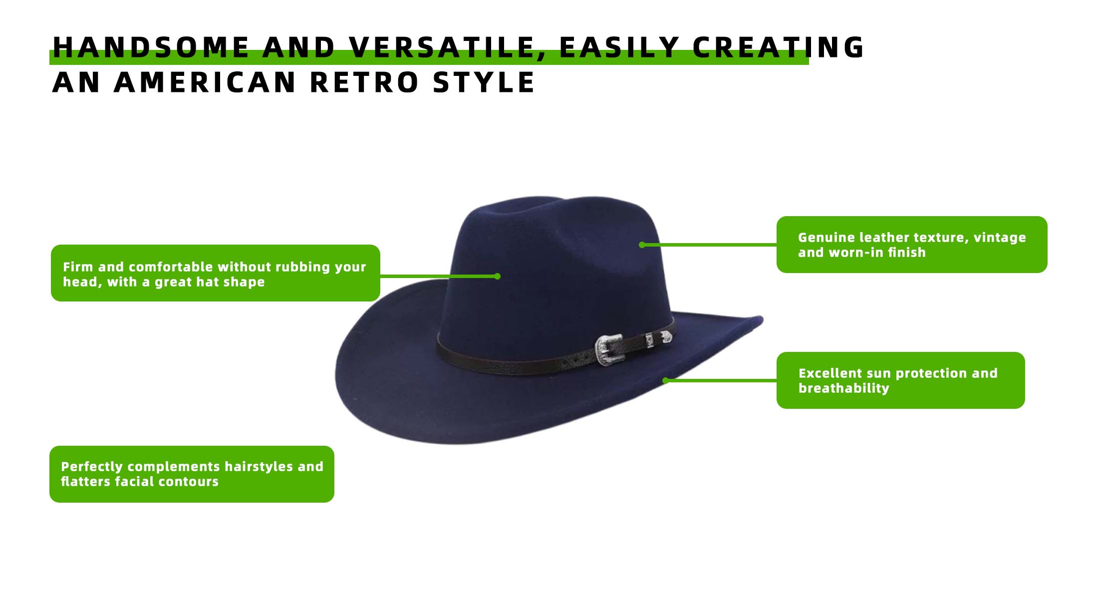 A cowboy hat exudes a sense of freedom and uninhibitedness, instantly creating a strong atmosphere.