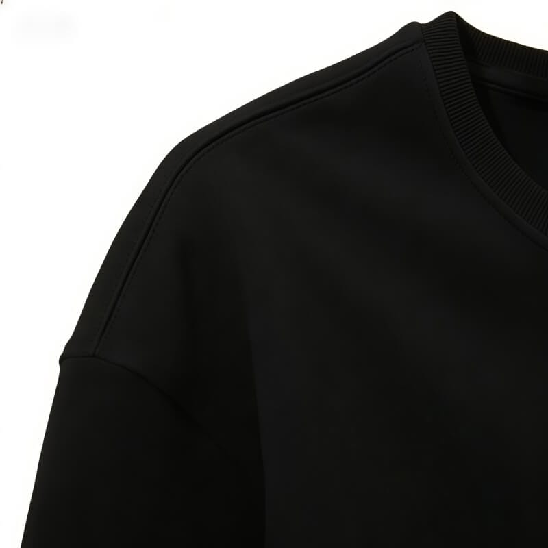 The V-neck cropped sweatshirt has a built-in structured silhouette with a lean look, not appearing bulky.