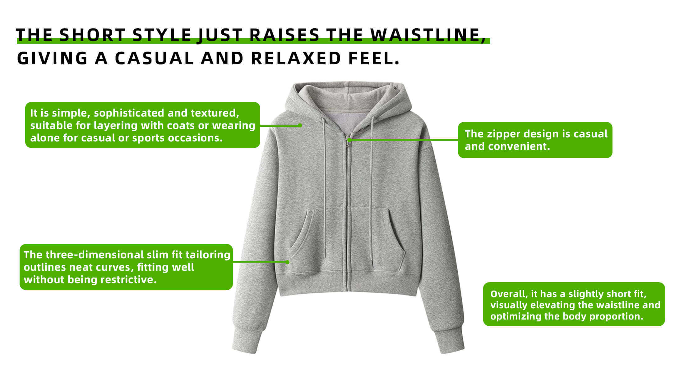 Short zip-up sweatshirt, lazy, cute and full of vitality