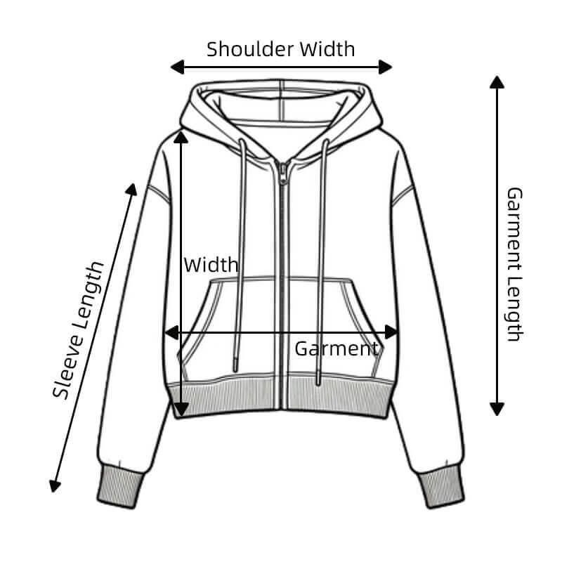 Communicate and design the details of the short zip-up sweatshirt, including color, style, and logo position.