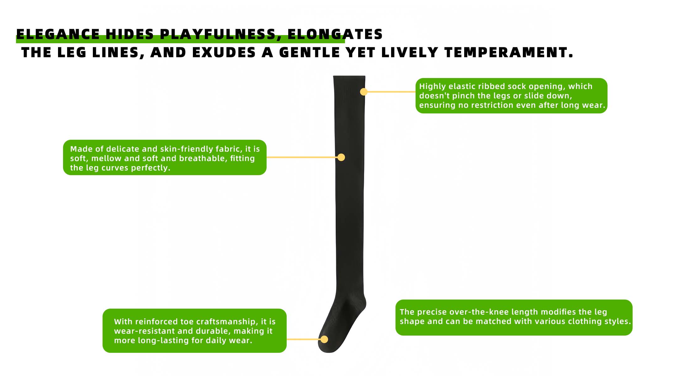 Over-the-knee socks are gentle yet a bit sweet and cool. They shape the legs, exuding a delicate girlish charm amidst a lazy vibe.