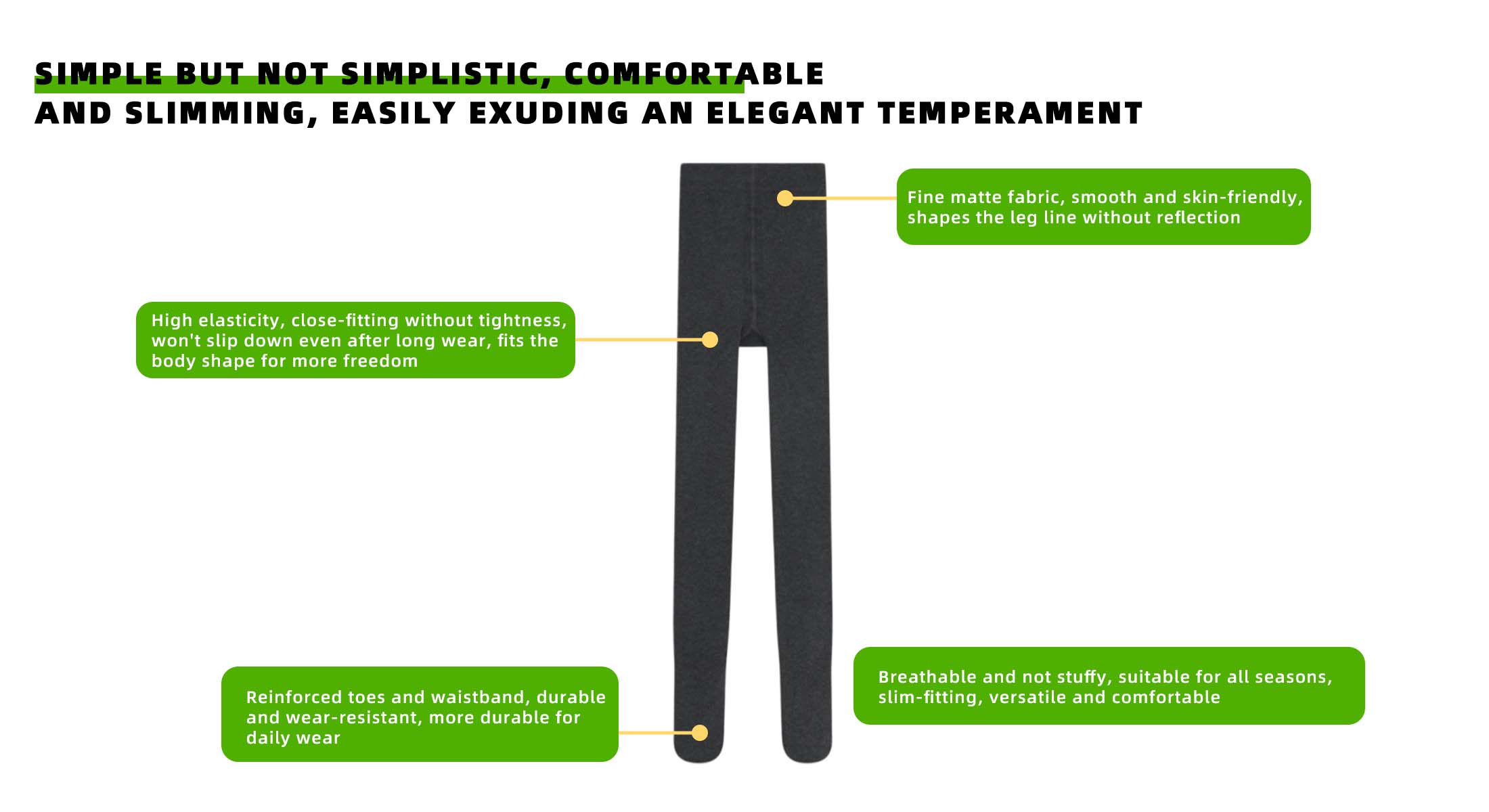 It fits delicately, is gently slimming, has a natural lazy and high-end feel, and easily exudes an elegant temperament. It is smooth and skin-friendly, modifies the leg shape, is simple yet exquisite, and shows femininity in daily wear.