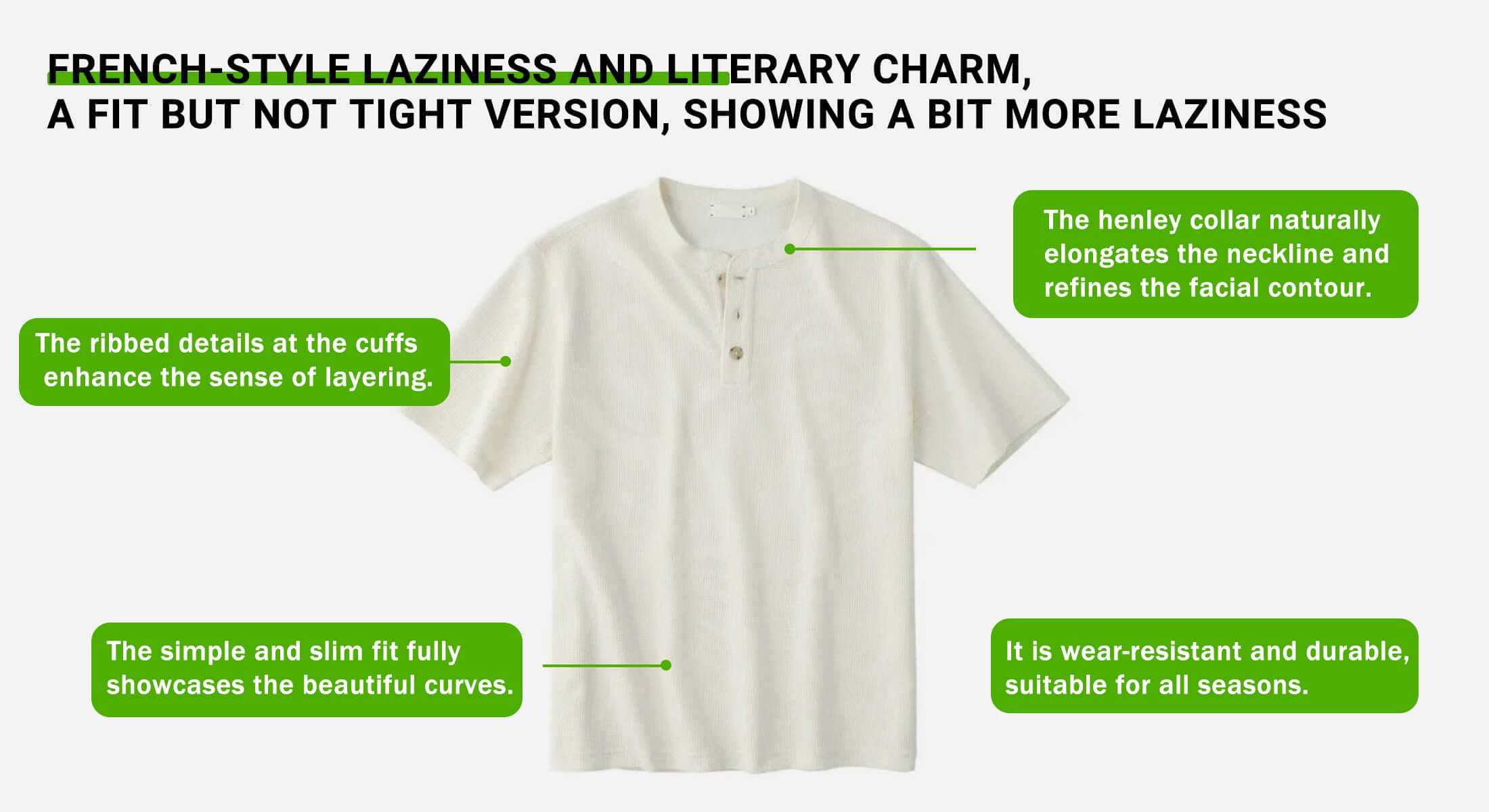 Henley collar T-shirt, understated and stylish, a piece that stands the test of time.